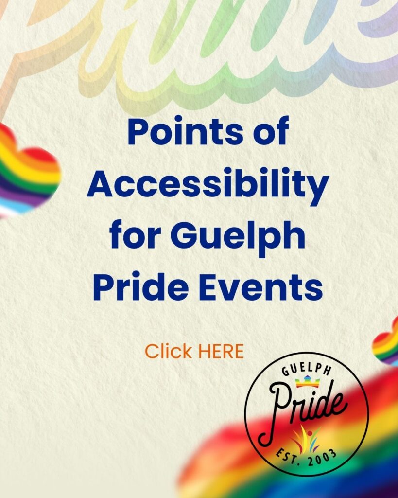 Guelph Pride celebrates diversity, education, and visibility within the 2SLGBTQI+ communities and beyond. We do this by continuously advocating for accessibility and inclusivity through self-reflection, creativity, and a knowledge of our radical histories. Guelph Pride is committed to creating belonging, safety, culture, and comfort for 2SLGBTQI+ people in Guelph and beyond.